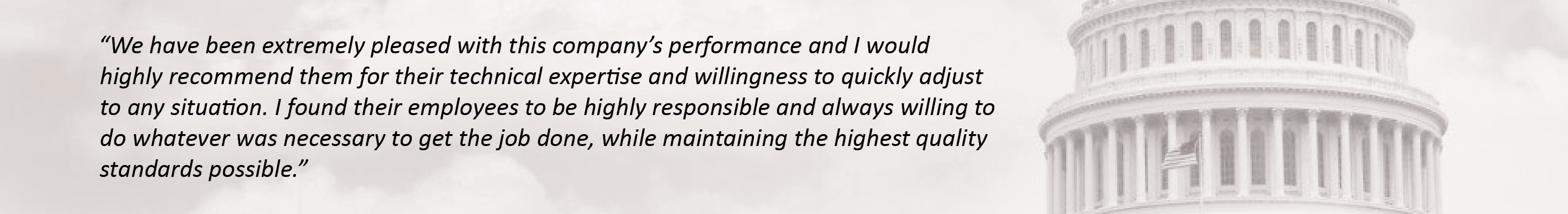 Our high-quality work and strong emphasis on our customers’ missions has resulted in Exceptional Contractor Performance Assessment Reports (CPARs) reviews and regular repeat work.